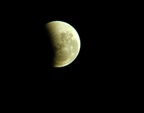 Lunar Eclipse 01-21-00 - photo 3 Bigger version located here BTW, if you know during which time during the eclipse these were made based on the time at which I took them I would much appreciate knowing that. Sure, I could search that out myself but if you have the info at your fingertips and you don't mind sharing ... that would save me the task!! ;-) Finally, I also made some photographs on T-Max 400 with a Canon A1 attached to the 400mm lens but these will be processed later. The battery driving the A1 failed due to cold and I had to warm it up twice above a stove to "save the day" but it was a pain anyway. Should have used a mechanical camera or an external source of power kept in a pocked. On the other hand, the digital versions above, for me, are already good enough and the color is nice to have. If I had been truly prepared I would have 1. prepared for the cold, 2. used color film, 3. used tracking and 4. would have gotten some sleep beforehand! You can send e-mail to the author at: Thank you, ADDENDUM: I received the following e-mail that explains the position of themoon relative to the shadow of the Earth in response to the question I askedabove: Date: Sun, 30 Jan 2000 19:06:12 -0500 My name's Dahl Clark, a friend of Dr. Loren Winters (you might know him) andstationed at Duke University, NC. I happened to be out in the *cold* (boy,it was cold!) during the entire first half of the total eclipse with myAstronomy class, and I know the stages of the eclipse during which your twophotos were taken at eclipse-01-20-00.html. Photo 1: Taken at "five minutes after midnight," the moon is now completelyin the umbra, which is where all traces of direct sunlight has vanished fromthe moon's surface due to the Earth's shadow. Since we're both located in the same time zone, the moon began its coursethrough the Earth's umbral shadow at 10:01 pm. That was when the moon wasbright and full, but one side of it was gradually becoming blackened). (Theeclipse actually started at 9:02 pm, when the moon was passing through thepenumbra, Earth's lighter shadow.) At 11:04 pm, the entire moon was withinthe umbra; the Earth's shadow completely covered the moon, and the moon wasred, as seen in your Photo 1. This condition, "totality," lasted for 78minutes until 12:22 am. At 12:05 pm, which was when you took Photo 1, themoon had almost completed its passage through the umbra. Photo 2: Totality lasted until 12:22, and the moon continued moving out ofthe umbra until 1:25 am, when the moon was completely out of the umbra. At1 am, when you took Photo 2, the full moon would have been partiallyshadowed because it was in the process of emerging from the umbra. (The real eclipse took place from 9:02 pm - 2:24 am, but the most dramaticportion, when the Moon passes through the Earth's umbra, lasted from 10:01pm - 1:25 am.) I really enjoyed looking at your pictures! I tried taking some myself witha digital camera on a tripod; none of my pictures looked as spectacular asyours. (Magnification helps!) It was also somewhat windy here that night,although we had clear skies for excellent viewing. I hope some of thisstuff helps out! Dahl |