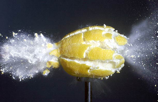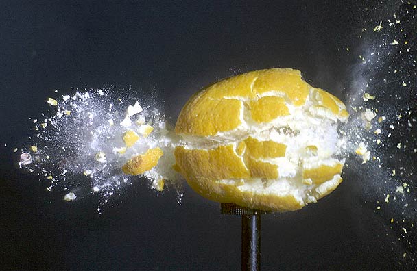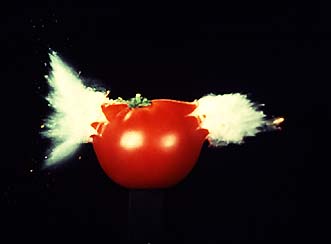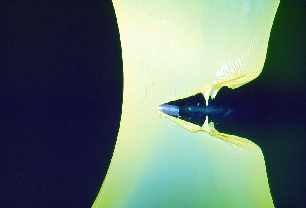 More high speed and stroboscopic photographs. Supersonic bullets in color schlieren beam, .22 cal bullet impact on lemon, Barnswallows returning to nest and chicks, etc.