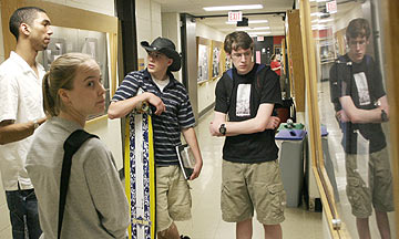Hey Andy, Just wanted to drop you a line to tell you how things are going. I'm working with Delphi Delco Automotive Systems who is now an independent manufacturer no longer with GM and we are based out of Kokomo, Indiana, an hour north of Indianapolis. Things are going good in Kokomo, I'm getting to work on lots of interesting projects and also go on some great trips. In fact the first Thursday I was here I was already on a two day trip to Michigan. On the Thursday we went to Milford to the GM Proving grounds for a review of a part we were proposing to GM and Friday we were in Dearborn, Michigan at Ford's headquarters. Also you will be happy to know; on the Milford trip one of the people at the meeting was JPHT's very own Ann-Marie (you can see her standing next to me in the photo). She is very cool and a really upbeat person. She graduated from the program some years back and is married and lives in El Paso I believe. We all got to hang out back a the hotel after the meeting and also at breakfast the next day before the team I was with had to go to Dearborn and Ann-Marie's team's flight departed back to Mexico. I can't really talk about what I saw at these places but let's just say for a car guy, I was in heaven! In Dearborn we got to stop into the Automotive Hall of Fame, and look around at some of the cars that were considered turning points in automotive production. The only remaining Honda S800 is there along with a replica of the first Mercedes-Benz powered carriage that was ever produced. It was a really great experience and I learned a bunch of stuff that I never knew before at the museum. The work that I do somewhat varies from day to day, but right now my main focus is on an instrument correlation project between three spectral radiometers that the TALC department has. The only problem is that our one Photo Research 705 died because of a circuit board failure, but we hope to have that back up and working in a week or so. The other piece of equipment that I have been getting familiar with is a Radiant Imaging ProMetric1400 Color. It a computer controlled Peltier cooled 14-bit CCD photometer, radiometer, and colorimeter that allows us to take an image of an HVAC unit or a radio to evaluate nighttime illumination and create 3D plots of basically anything we need to know in addition to doing defect analysis of the prototype. How are things back in Rochester? Did you get any postcards from other co-op students? Hope everything is well and im looking forward to classes starting in the fall. Take care, Jeff Detrick