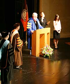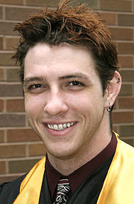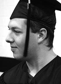 On Saturday May 22, 2004 starting at the unheard of hour of 7:30 am in the Gordon Field House on the RIT campus (from left to right) Jessica Gehlhar, Jon Lorang, Nicole Mahany, Elizabeth Martin, Alistair Neal, Luke Sorensen, Katrina Willoughby, Trevor Ehman, Jessica D'Amico, Lisa Bozek, and Jeff Detrick participated in the graduation ceremonies of 2004. On the spur of the moment the group decided to make informal graduation portraits and even Luke and Trevor, who arrived after they were made, were included in the final list using the magic of image assembly to put their faces against a background more-or-less similar to that of the others. (See if you can detect the errors in the paste-ups!). After the photographs the group reassembled in the Field House and had a merry old time until the call to graduation came from the event officials. The ceremony transpired without any significant side-shows typical of the restrained and conservative behavior of Tech students! (If you buy this I have a bridge for sale...!). Anyway, a good time was had by all and many happy memories of the occasion will surely remain forever etched in every students mind. C O N G R A T U L A T I O N S G R A D U A T E S O F 2 0 0 4 !