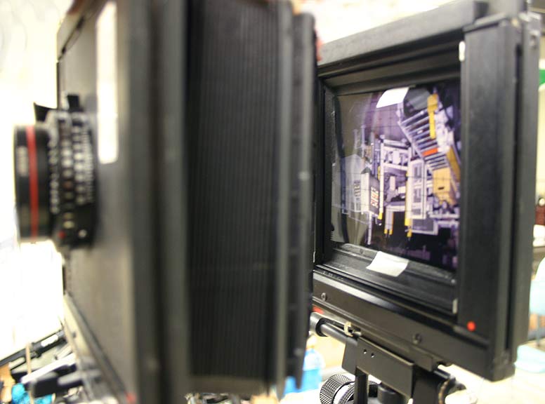 In this example, as shown in Figures 1 and 2, the objective is to place the image of the Polaroid camera into an industrial environment represented within the 4x5 transparency. The In Camera Masking procedure can be accomplished in various ways but for the frugal photographer with access to a camera such as the Sinar or similar cameras it is a technique that can be achieved with no additional investment in tools or equipment. Granted that there are commercially available devices that have certain advantages in terms of speed an possibly reliability but for the photographer operating on a shoestring the following step by step instructions should save funds better spent on other items than a commercial In Camera Masking (ICM) unit.