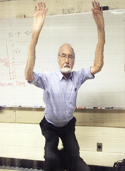 School of Photographic Arts and Sciences Rochester Institute of Technology What is popularly referred to as "slit scan" photography is more likely than not confused with various related but not identical methods of image recording. Slit scan is most closely related to the manner in which a focal plane shutter makes a record of a scene in a focal plane shutter equipped camera. The focal plane shutter in an idealized and basic form consists of a slit or slot that travels from one side of the image gate in a camera to the other. In early cameras the slots were cut into opaque "curtains" and the tension on the driving springs could be adjusted as well allowing the photographer to select from among a large number of exposure times. In modern cameras the rate at which the slot travels is kept constant but the size or width of the slot is adjusted depending on the exposure time that is set on the speed dial of the camera. A prime example of the focal plane shutter "effect" are the photographs shown below. A photographic "icon" is the image made by Henri Lartigue with probably a large format Graflex (or similar) camera of a race car that appears distorted and where also the spectators appear distorted or leaning at an impossible angle. Robert Doisneau, noted industrial photographer, also experimented with the technique and made the photograph of the intertwined couple probably with a large format camera in which the shutter slot rate f movement was slowed down giving time for the couple, standing on a turntable, to make a turn or two while the slot moved from the top of the frame to the bottom. ![]() In my case the photograph was made in my special effects class years ago using a traveling slit scan box to which the camera was attached. It was made out of some wood, a pair of rollers, a high torque variable speed DC gear head motor, and some ancillary parts as described in another article at: http://people.rit.edu/andpph/text-slit-scan.html The color photographs ones below were made with a Canon Digital Rebel attached to the back of the same box while the shutter was held open for about 20 seconds or so giving time for the slit up front to move from top to bottom of the front of the box. OK - now where do we go from here? If you attach a video camera and do a recording looking into the "slit scan box" with a video or still camera that provides a video out all you will see is a traveling slot moving across a dark field. Now if you could accumulate the image of the moving slot one line at a time and display the resulting summation as the slot moves then you'd be able to see the resulting image "develop" on the screen ... filling up more and more of the frame. There is (or was) also a video converter or control box made by Colorado Video that does a similar function. It is called a Colorado Video 593 peak store device. It records any change in a field that rises above a set value - let's say black and displays the result continuously on the video out. In the digital realm the counterparts of the film based cameras using a slit to "scan" the image plan (like focal plane shutters) are called linear array focal plane scanning cameras. A prime example of such a recording system is the Better Light, http://www.betterlight.com, scanning back for large format cameras. Another method for recording a "slit scan" image is to obtain a digital camera that operates on the principle of a "rolling shutter" - the digital equivalent of a focal plane shutter. Most CMOS phone cameras for example have this kind of shutter built-in - but they move the area of sensitivity or "line" very quickly so they are not well suited to make distortions. Of course, animating or editing still frames is also an option. It is an option that some (many these days) people have "exploited". I believe one of the people who is a promoter of the method is the one who runs the following website and whose name is Bryan Mumford. and his web address is: http://www.bmumford.com/photo/camctlr.html Golan Levin put together an extensive list of people who photograph or make images based on either continuous recording or extraction of several lines fro each still frame of a video record and ultimate assembly into a final presentation. The list does not seem to discriminate between systems where the slit moves or where the recording surface moves. These are really different systems. One is best described as a "streak" system, another as a slit-scan system and the third as a strip system. In any case his list can be found here: http://www.flong.com/texts/lists/slit_scan/ To illustrate the difference between the moving slit method of creating images described above and other techniques erroneously "lumped in" with it these are the ones described below. These three or four recording methods or techniques are also generally (and in my opinion erroneously) also referred to as slit scan cameras generating slit scan photographs or simply called slit scan imaging systems. Unlike the moving slit approach described at the top of this article they depend on moving film (in the case of film cameras) past a stationary (usually) slit. The result of this approach is exemplified below in a record of the order of finish of racers at end of a race. This image is referred to as a photofinish photograph and it was made with what is commonly called a "strip" camera. These photographs are made by fixing the recording field of the camera to a narrow horizontal view by making the lens "look" through a narrow vertical slit and moving photosensitive material behind it as the images of the racers travel over the slit. An approximate match between image speed and recording material speed is desirable but not essential. The counterparts of these film-type photofinish cameras in the digital realm are called linear array strip scanning cameras and they have now pretty much replaced film-type photofinish cameras at most racetracks. Their recording rate is adjusted so that the resul