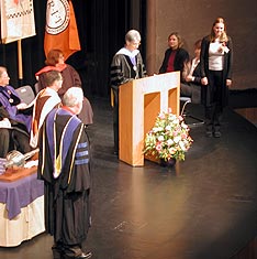 On April 4, 2002 our very own Erin Murphy, senior in the Imaging and Photographic Technology program, received an RIT award for Outstanding Undergraduate Scholarship. This is an exceptional achievement because it means that Erin exceeded a Cumulative GPA of 3.85 throughout her academic career and, in addition, excelled in several other areas complementing academic achievement such as creative work, civic activities, employment, etc. At the awards ceremony Erin was accorded the distinction of Rochester Institute of Technology Scholar.