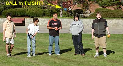 A source for wonder and amusement was the 6" equatorial mounted telescope that was used to track the Sun and visually demonstrate the presence of ubiquitous sun spots on the star's surface (some asked if they could be cleaned off). Also, a spirited game of bocci-ball was a source for physical exersize for the more physically fit members of the group.