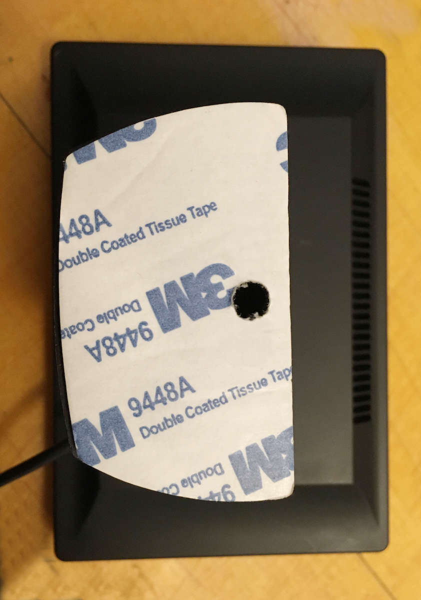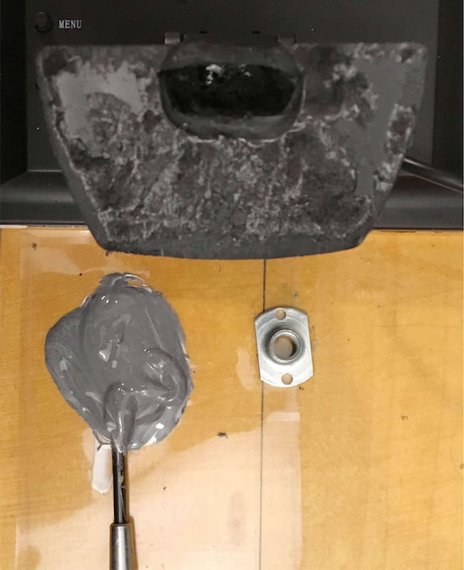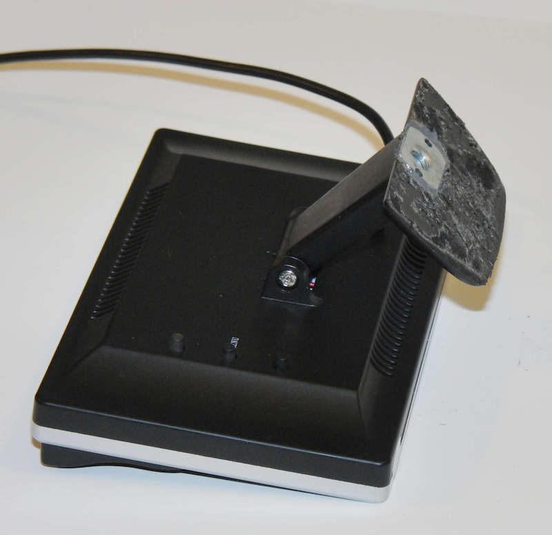 Knowing that eventually I would want to fasten the monitor to something like a tripod I decided to install a ¼ x 20 inch “T” nut on the bottom of the terminals foot. Since the stand was hollow on the inside I gouged out part of the thin plastic bottom cover and glued the “T nut in place.